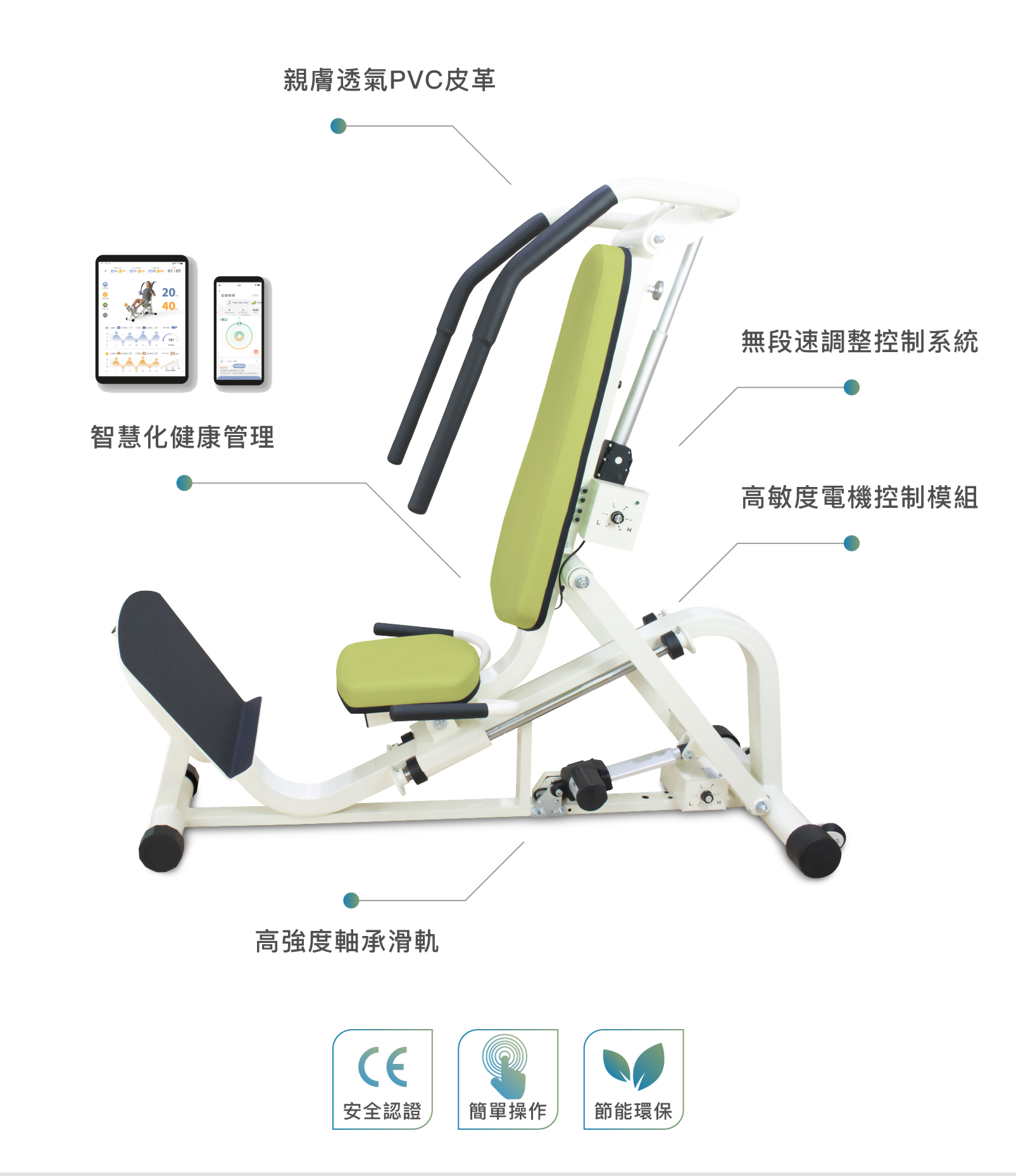 - 智慧化操作管理,健康&運動全面追蹤。